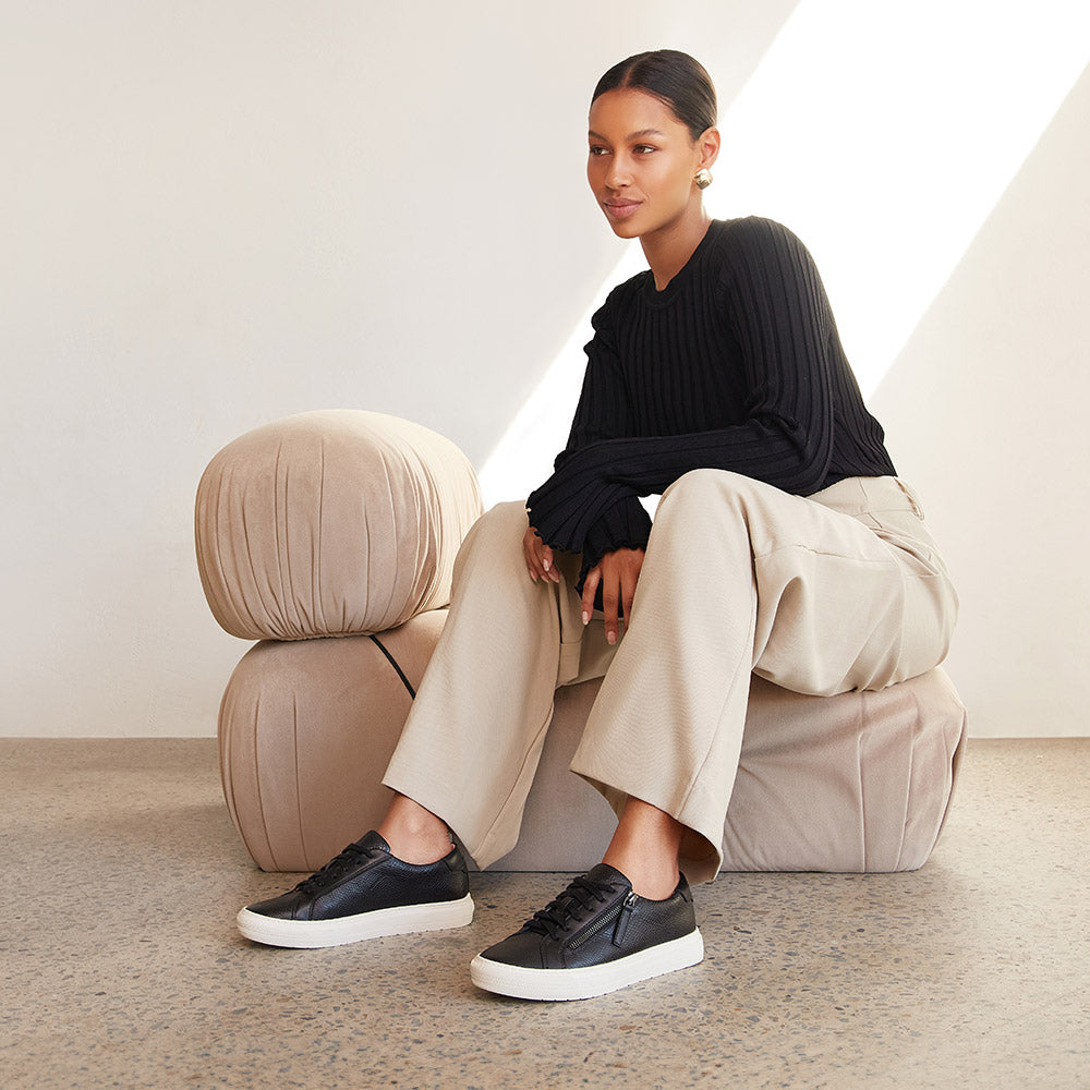 When it comes to styling workwear sneakers, black sneakers, or heeled sneakers Australia based are always popular options for their chic and statement styles. However, there are also endless possibilities when you opt for classic styles like SOPHiE and HANNAH, too. Don’t be afraid to mix and match prints or opt for a solid colour palette for teaming with your favourite sneaker pair.