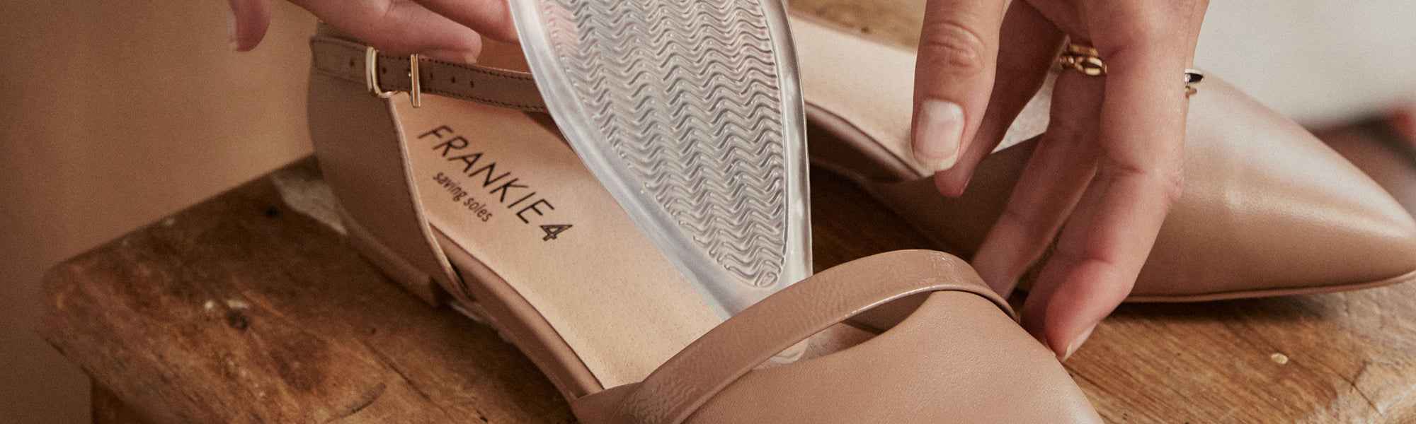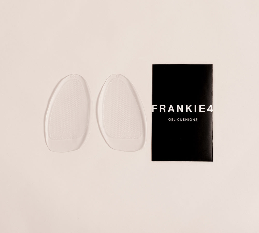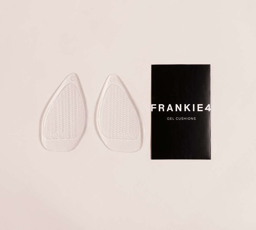 - Test the positioning and fit of your gel cushions prior to securing them with their adhesive backing (check the FRANKIE4 logo is facing upwards once adhered to the shoe).