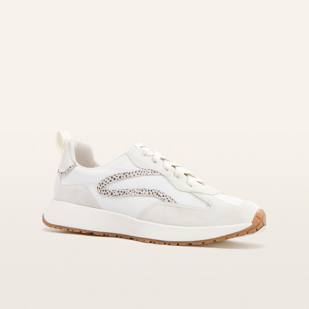 The ultimate in fashion and function—Axel, in essential Stone. Equipped with a triple layered-support and cushion system, precise forefoot cushioning, and customisable fitting options, Axel grounds every step in science and style. Axel's sleek sneaker silhouette is elevated with a textural blend of performance textile, luxe leather and suede.