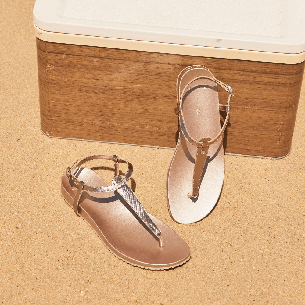 A sleek staple with a touch of shine, Bondi in Platinum is your go-to for sun-drenched days and balmy nights. Crafted from waterproof-treated leather, this beach-friendly toe post sandal features an adjustable ankle strap for a secure, personalised fit and our exclusive monogram stud for a touch of elegance. Underfoot, our podiatrist-designed footbed is cushioned and contoured to support every step—making Bondi as comfortable as it is versatile.
