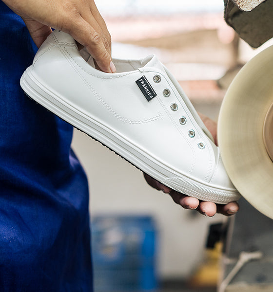 We recommend applying a high-quality waterproofing spray before your first wear and periodically. Spot clean marks with a damp cloth using water only, and lay flat to dry to keep them looking their best.