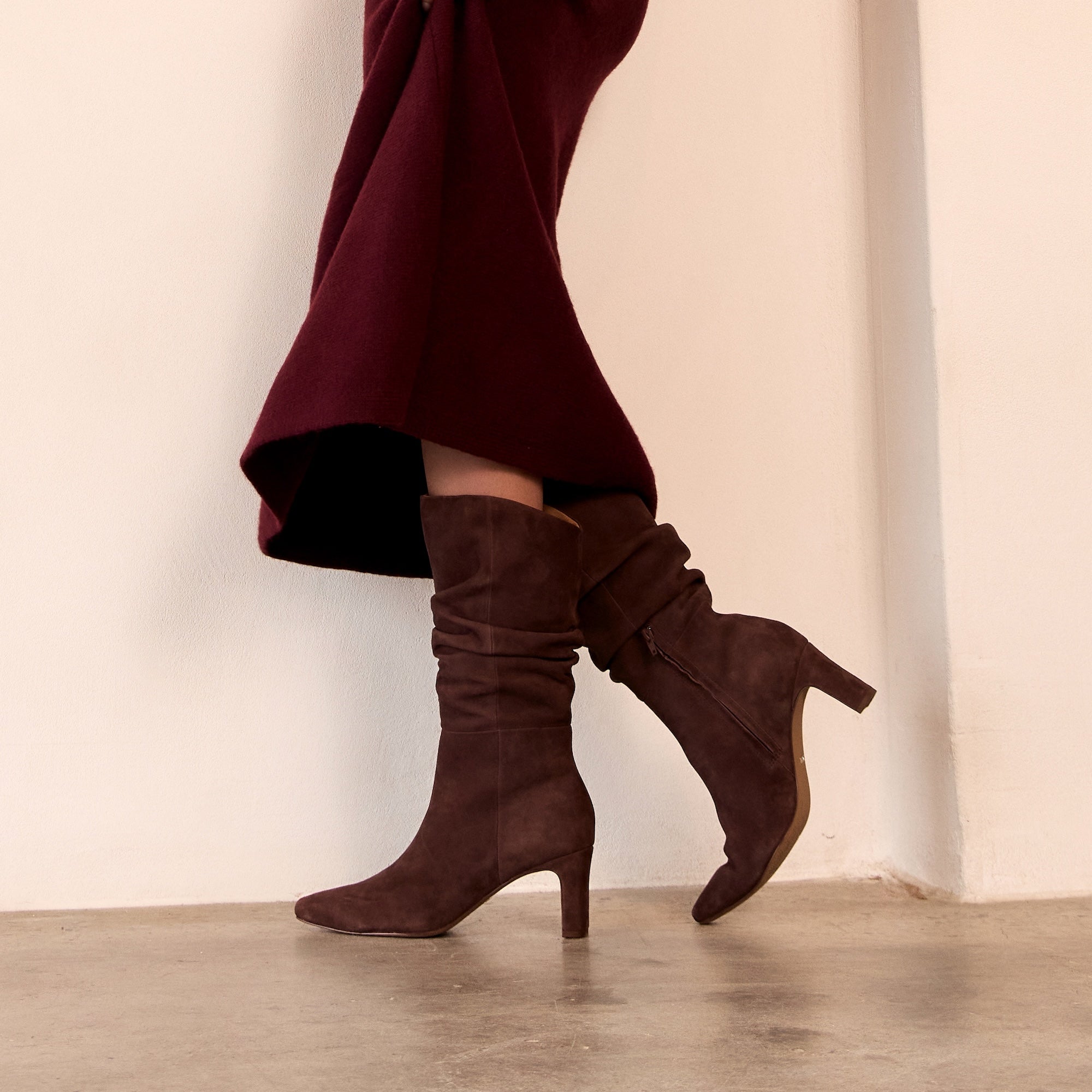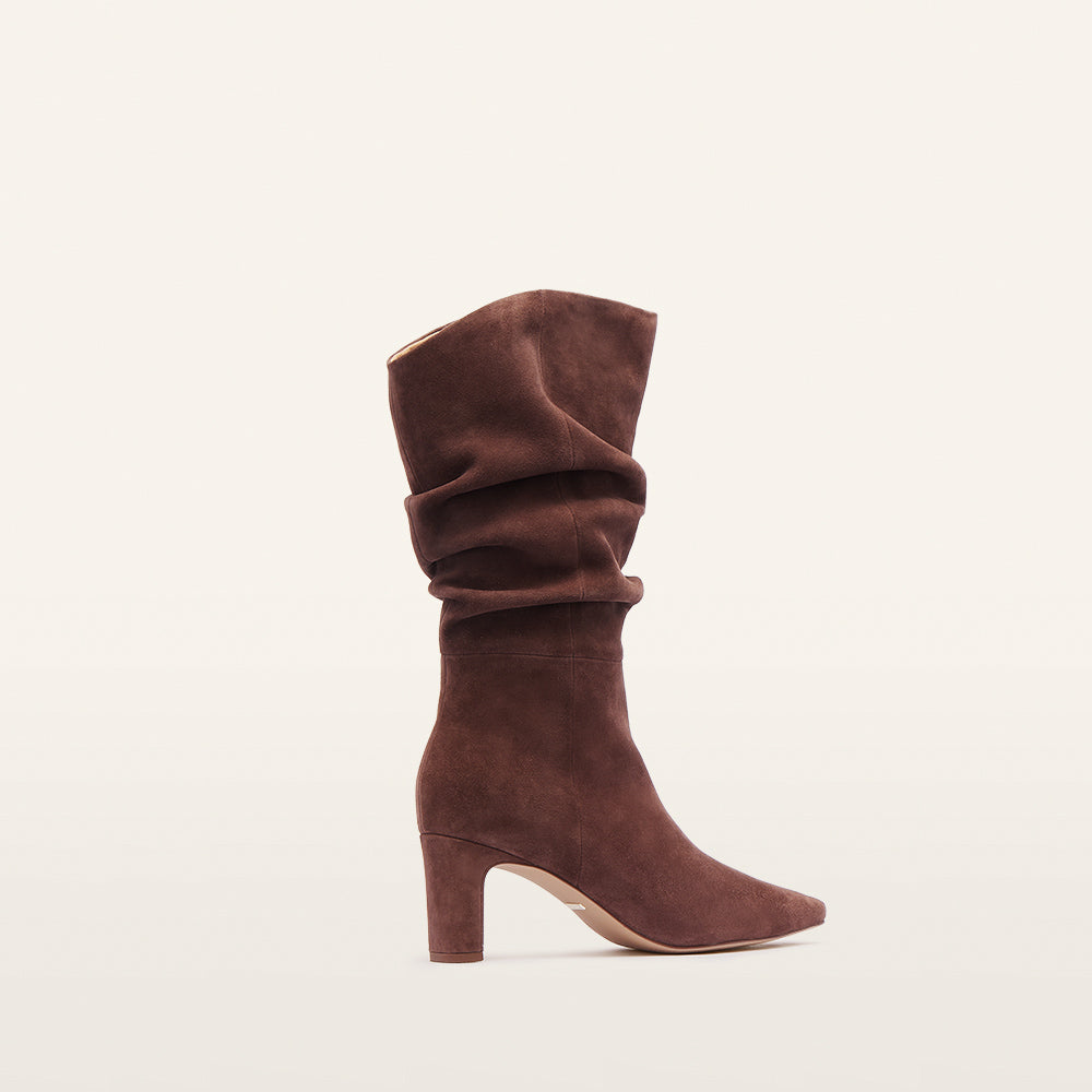 A refined take on the classic knee-high boot, Clarkson in Milk Chocolate Suede is crafted from velvety soft suede for effortless polish. The inside zip allows easy wear, and our Sole Saver Pack® offers a personalised fit. An elegant heel is balanced with arch support, while thoughtfully placed rPET foam—made from recycled plastic bottles—alleviates pressure and prevents rubbing for all-day comfort.