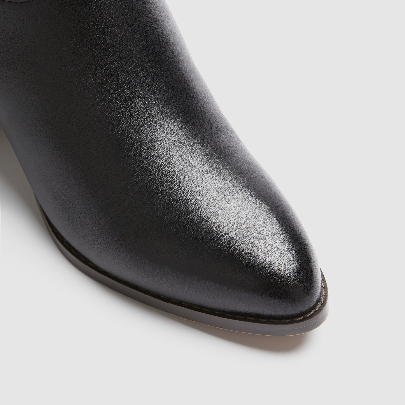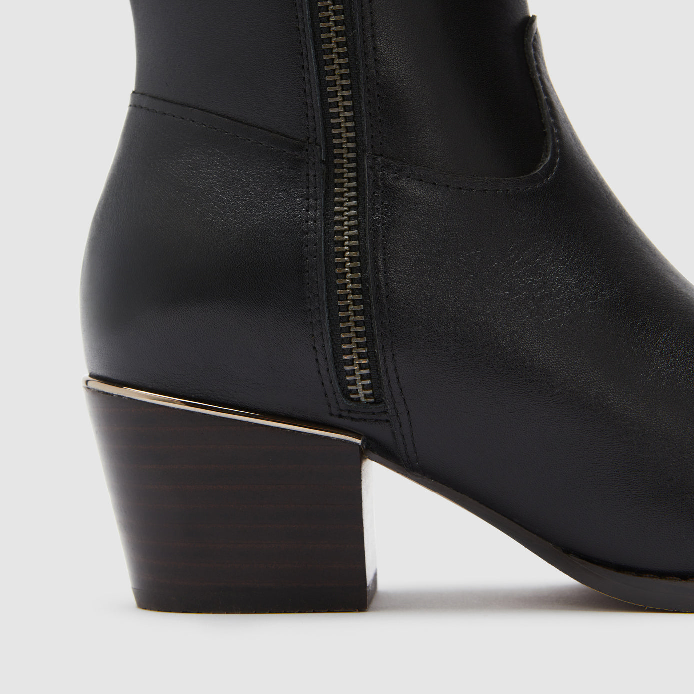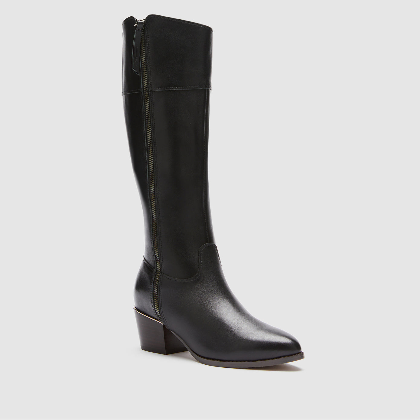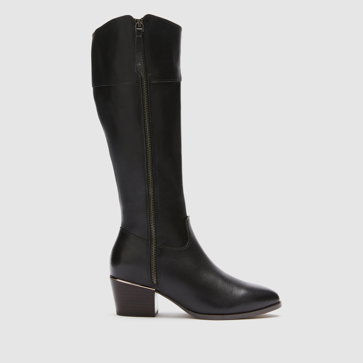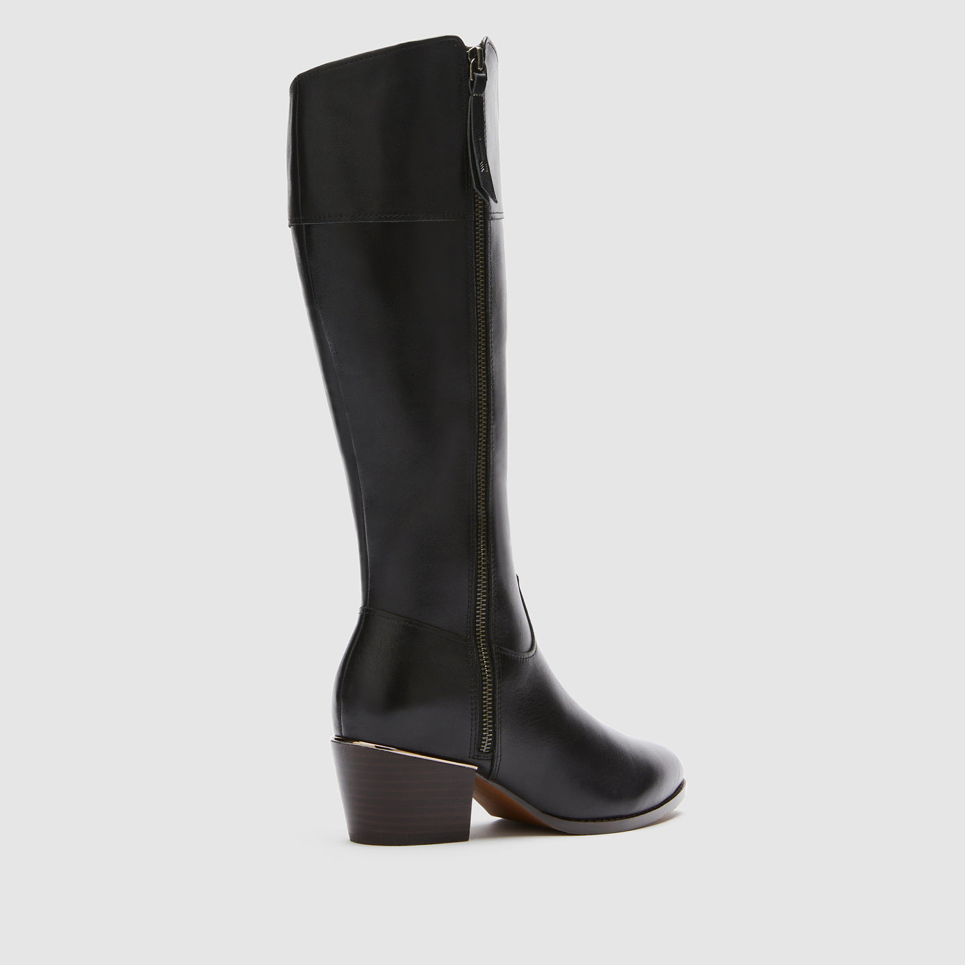 Invest in inimitable style with Georgie Black. The equestrian inspired knee-high boot expertly crafted with soft leather, silver heel cuffs and sturdy mid-heels. Made for all women, Georgie moulds to your leg for a flexible, flattering fit and can be worn zipped halfway or fully up. As chic as she is versatile, this design pairs well with everything from dresses to denim.