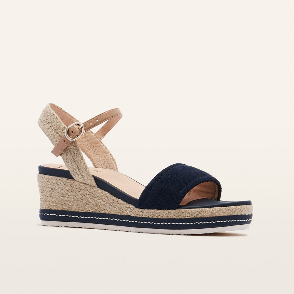 Polish meets play—Harris in Navy Suede is your signature espadrille wedge from weekend to resort. Featuring signature jute detailing, an adjustable upper strap, and subtle stitched accents. Touches of soft suede and a triple-layered support system, including over a centimetre of forefoot cushioning, keep every step effortless. Relaxed, versatile, and endlessly wearable, Harris blends comfort with a twist of coastal laid-back sophistication.