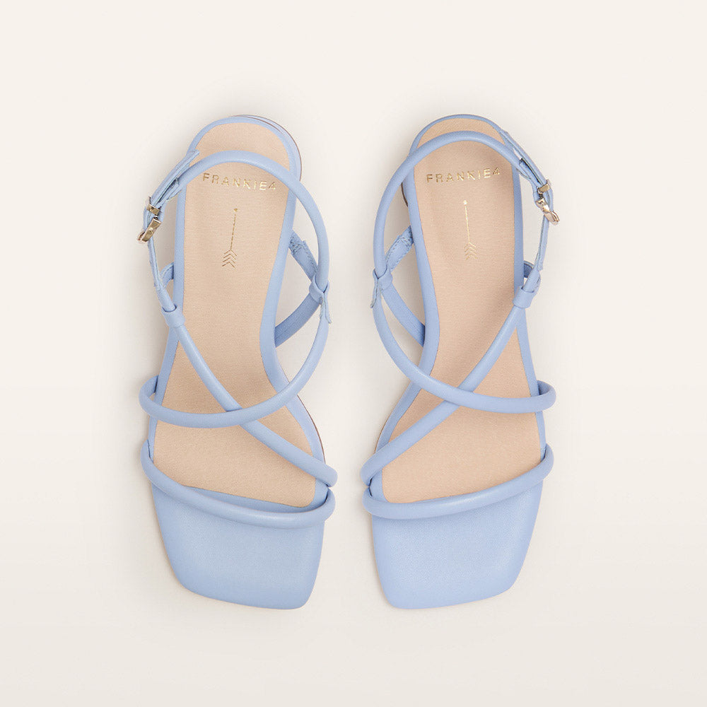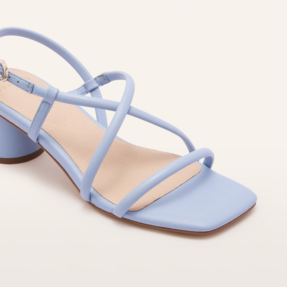 Brighten your step with Lottie in Cornflower, a mid-height strappy sandal crafted to flatter and delight. Our podiatrist-designed LuxaLite® footbed provides lightweight, contoured support exactly where you need it, giving you the sleek style you desire with tech that delivers longer-lasting comfort. Set atop a mid-height heel and finished in fine leather with a plush, strappy silhouette, flattering criss-cross design, and adjustable backstrap, this sandal is as chic as it is wearable.