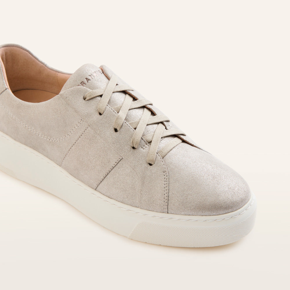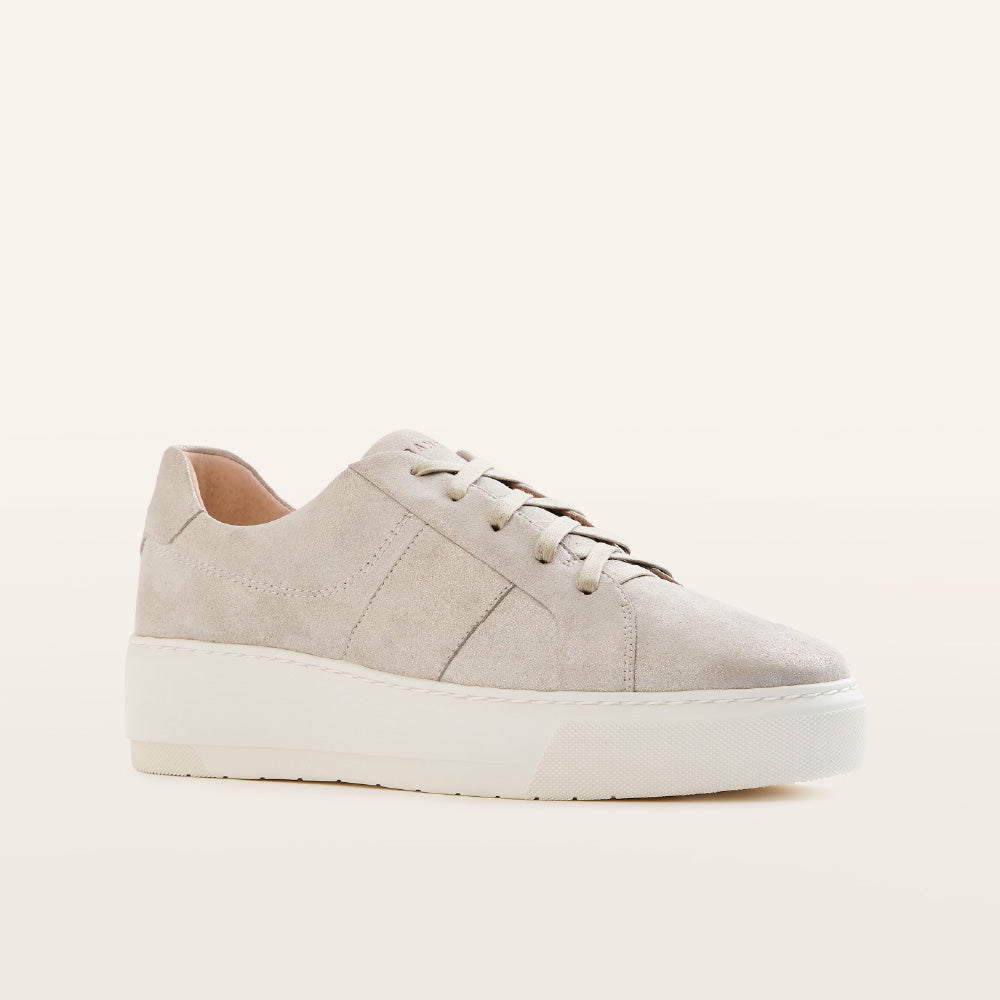 Future-proof your wardrobe with Riley in eye-catching Silver. Riley features a statement platform sole for extra height, incredibly lightweight construction, and laces made from recycled cotton, with the ability to be styled with or without them. A luxe leather finish and an ingenious support and cushion system make Riley maximalist when it comes to style and comfort.