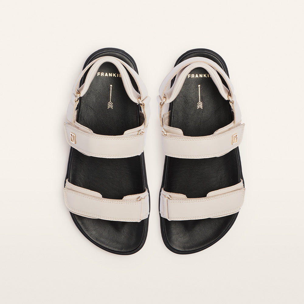 Wear-anywhere style: Rome in Ecru, a fresh and versatile sandal with sneaker-inspired ease that pairs effortlessly with every outfit. Featuring our Sole Hero® Footbed, podiatrist-designed with built-in heel, arch, and forefoot support, on a dual-density sneaker sole for lasting comfort. Fully adjustable vamp and ankle straps with a hook-and-loop system let you customise your fit for the perfect stride. Finished with a soft, stretchy neoprene heel strap and subtle logo hardware, blending comfort with refined detail.