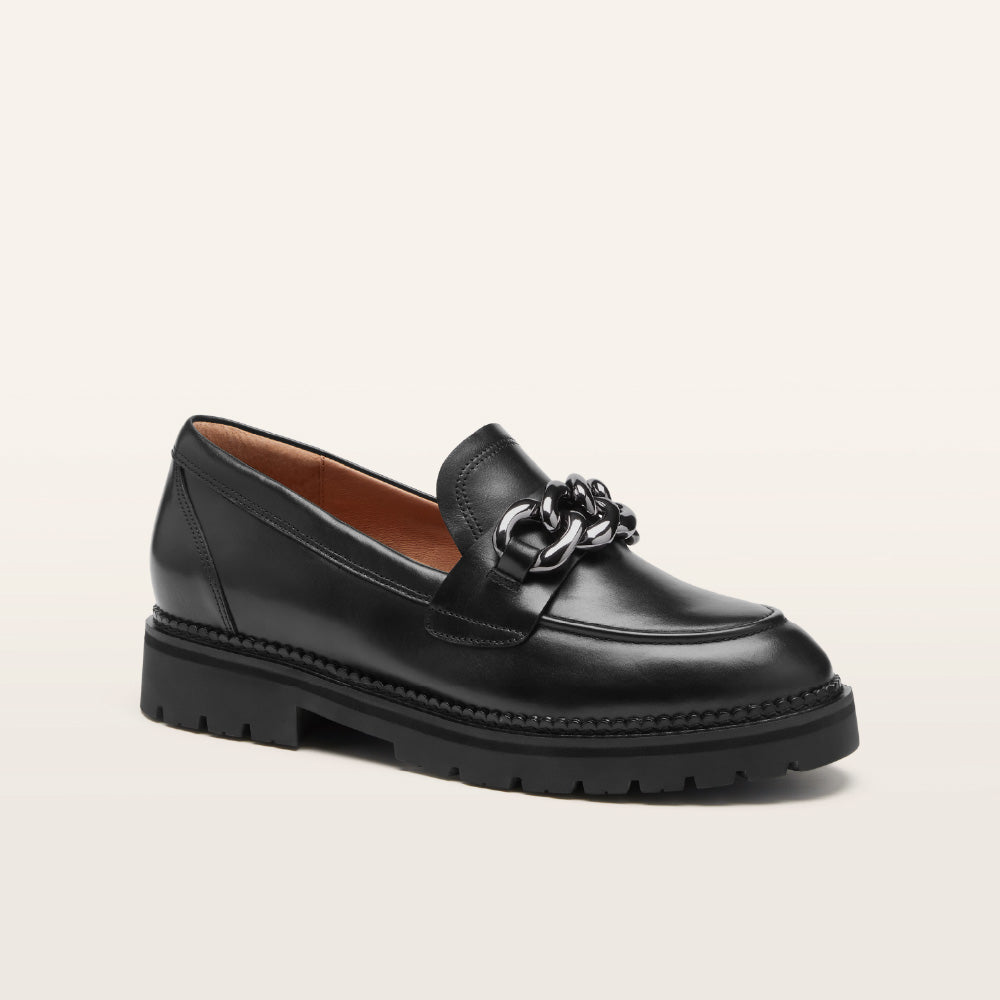 Making classic style an entirely new experience, Saint is the must-have loafer of today in flawless Black. Saint features an exaggerated chain detail, luxe leather, four layers of support and cushioning, and a utility-inspired sole complemented by a sleek upper. This pair defies expectations with perfectly weighted construction.